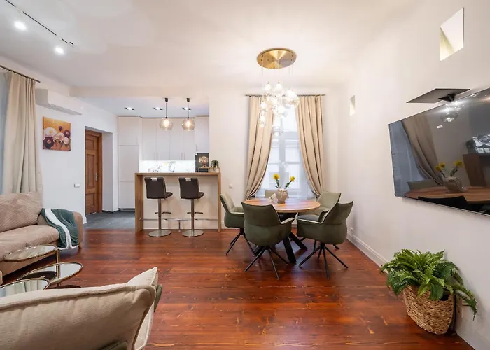 Cosmos Ilūziju Muzejs znajduje się tylko 6 min spacerem od 1-pokojowego apartamentu Soleil - Shine Of The Old City, Parking & Sauna, natomiast Brama Prochowa znajduje się w pobliżu. Apartament o powierzchni 62 m^2 oferuje saunę.